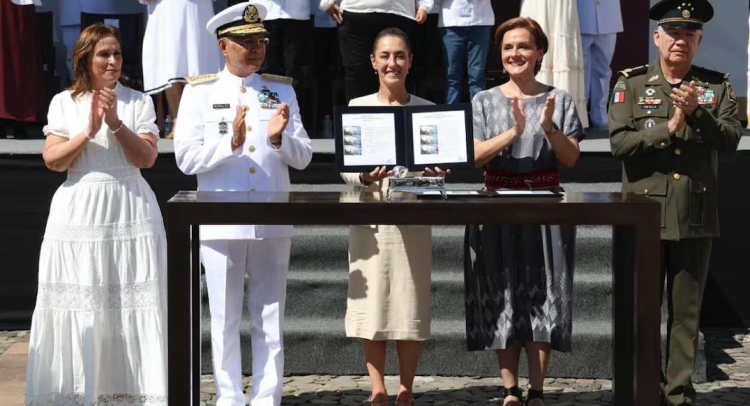 “Las naciones del mundo miran a México con esperanza y admiración, porque aquí la patria se defiende con amor, y cuando el amor por el pueblo, el amor por la patria y la razón se unen, el odio y el llamado al injerencismo se debilitan”, dijo. En su mensaje, la presidenta rindió homenaje a la Armada de México y a los marinos que, desde 1825, garantizan la defensa de las costas para concluir con la Independencia de México en el mar.