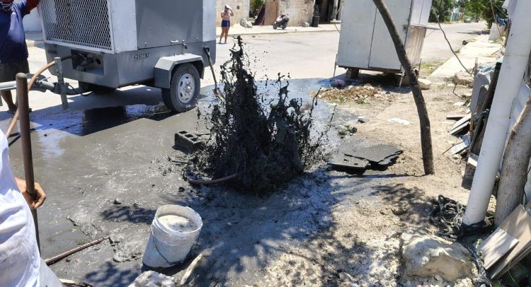 Personal de la Dirección de Desarrollo Urbano y Obras Públicas, además de atender calles de la cabecera municipal, trabajó recientemente en la comisaría de Chelem Puerto realizando la limpieza y desazolve de pozos y registros.