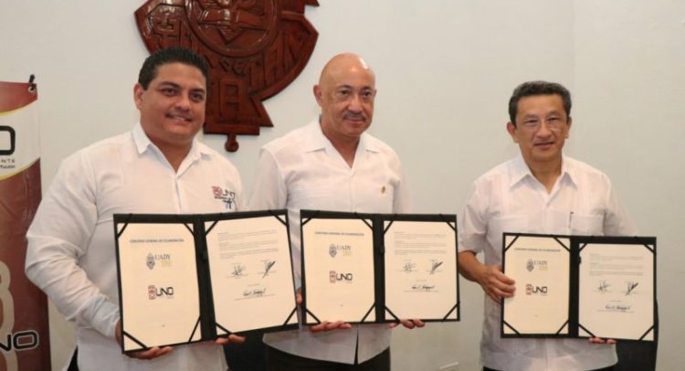 De parte de la UNO, la directora de Planeación Institucional, Amireyoli Burgos Aguilar; el director Académico, Enrique Centeno Rosado; la jefa de Oficina de Vinculación y Extensión, Laura Medina Alcocer, entre otras autoridades.