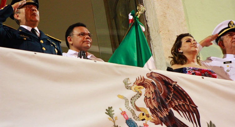 El Himno Nacional Mexicano se escuchó y los yucatecos acompañaron con fervor patrio al Gobernador, Rolando Zapata Bello, que de esta manera encabezó la solemne ceremonia por última ocasión en su sexenio que propiamente está a dos semanas de concluir.