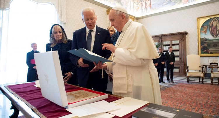 Antes de reunirse con los dos políticos europeos, el líder estadounidense fue recibido por el papa en una visita que, en total, duró más de tres horas . El entendimiento entre ambos mandatarios quedó patente en las palabras que se dedicaron. “Eres el mayor luchador por la paz que he conocido”, dijo Biden al Papa. El pontífice, a su vez, se mostró feliz de que Biden sea un buen católico y defendió que debe seguir recibiendo la comunión pese a sus posturas a favor del aborto.